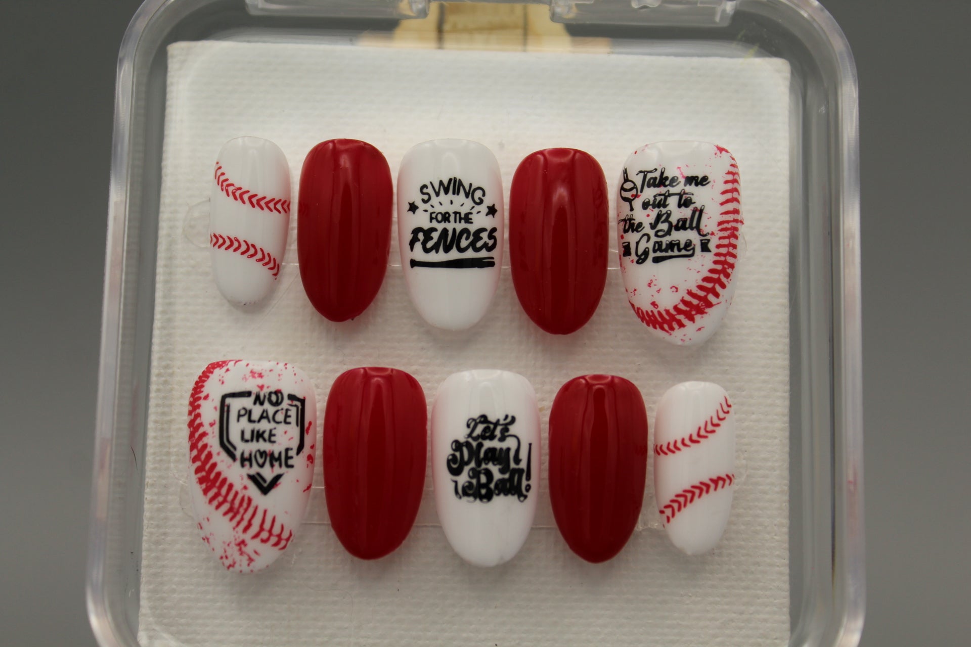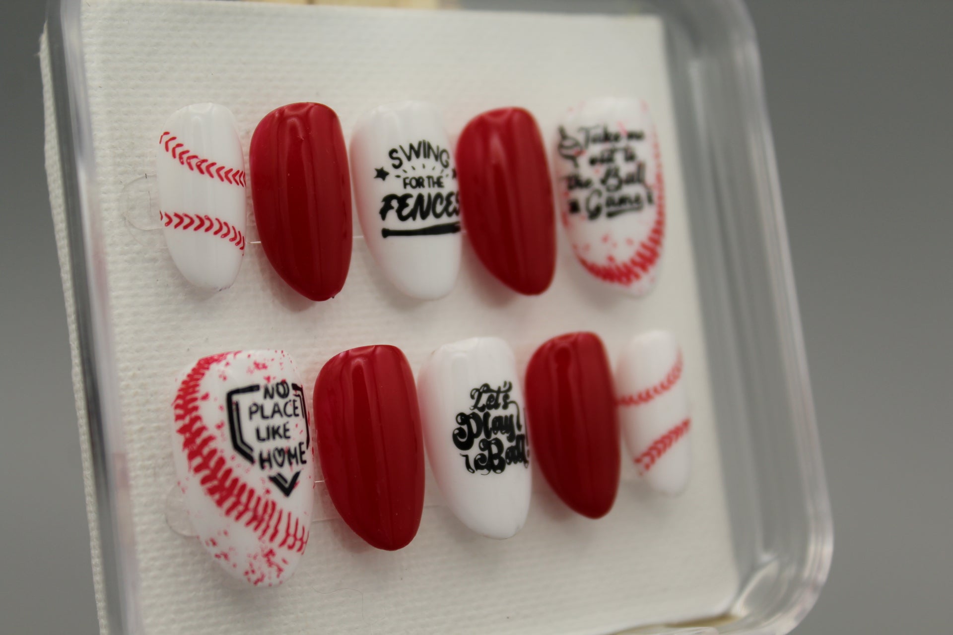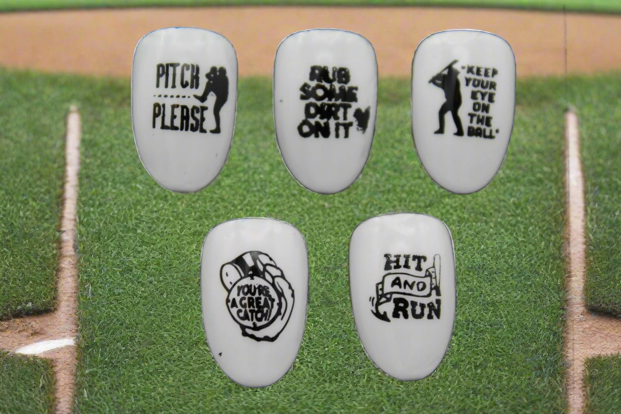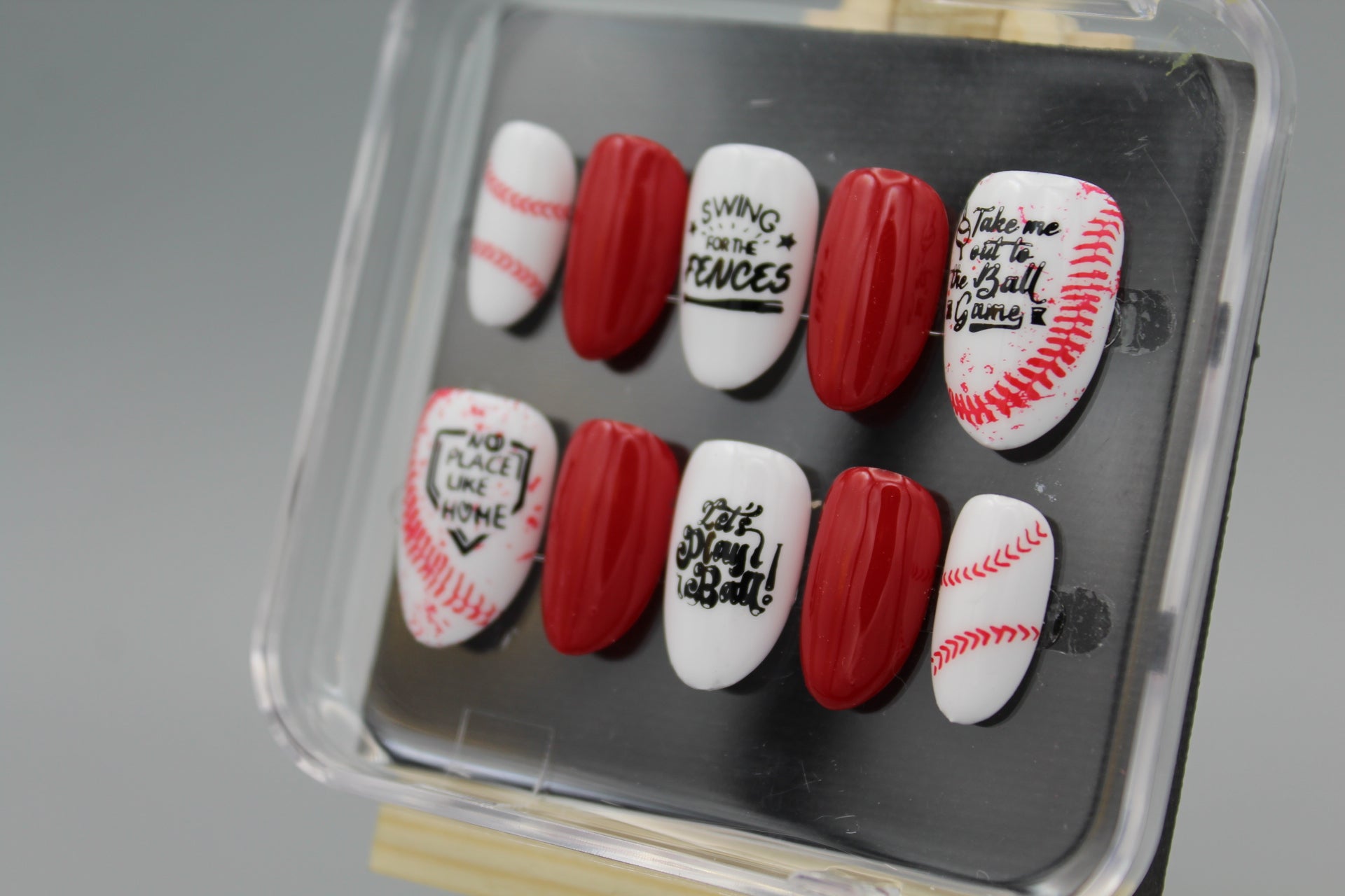 Step up to the plate with our customizable Baseball/Softball nail set! Perfect for sports fans who want to show team spirit right at their fingertips. These playful nail designs feature classic baseball stitching patterns that can be personalized with either the classic baseball white or softball yellow.