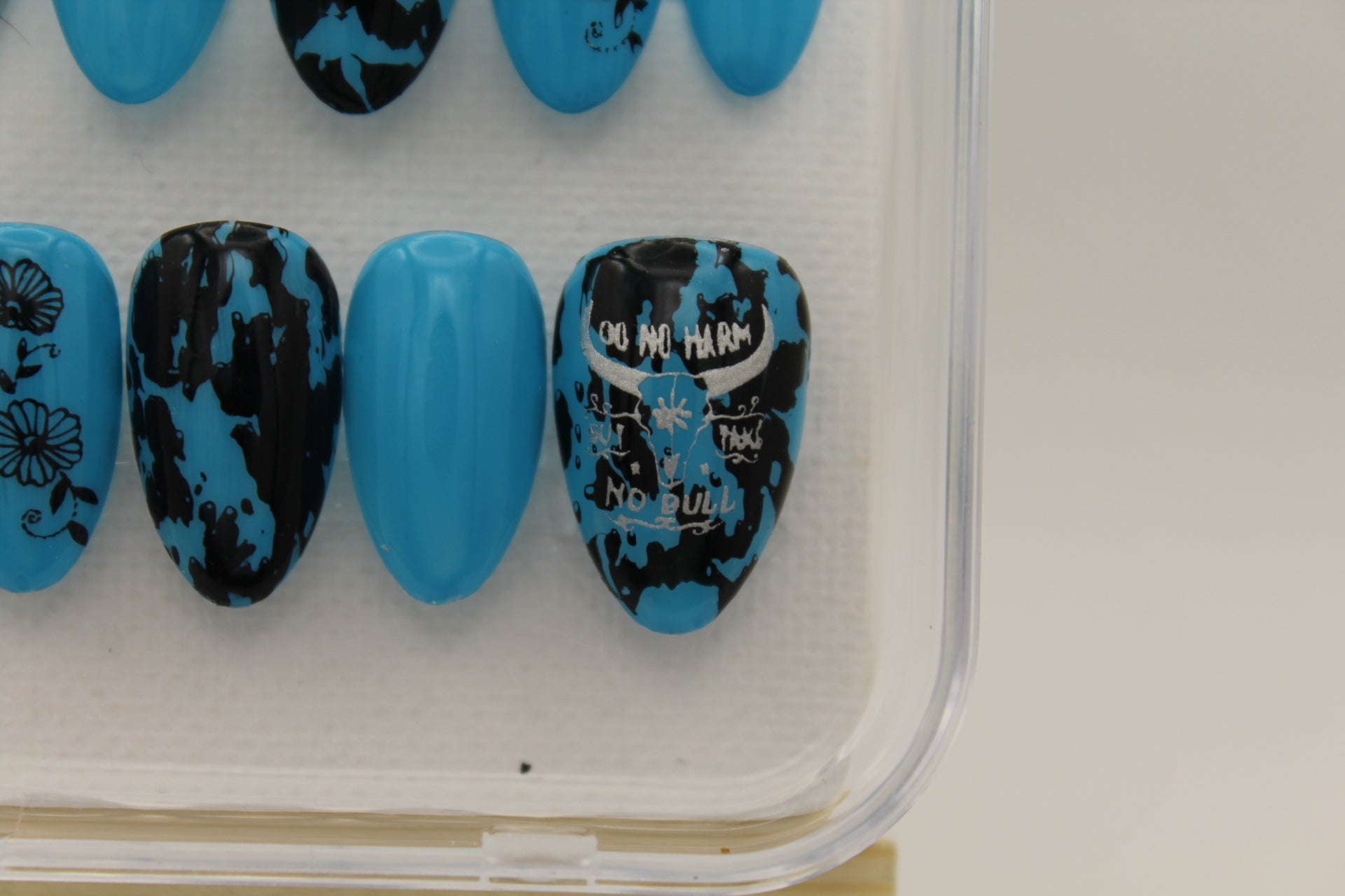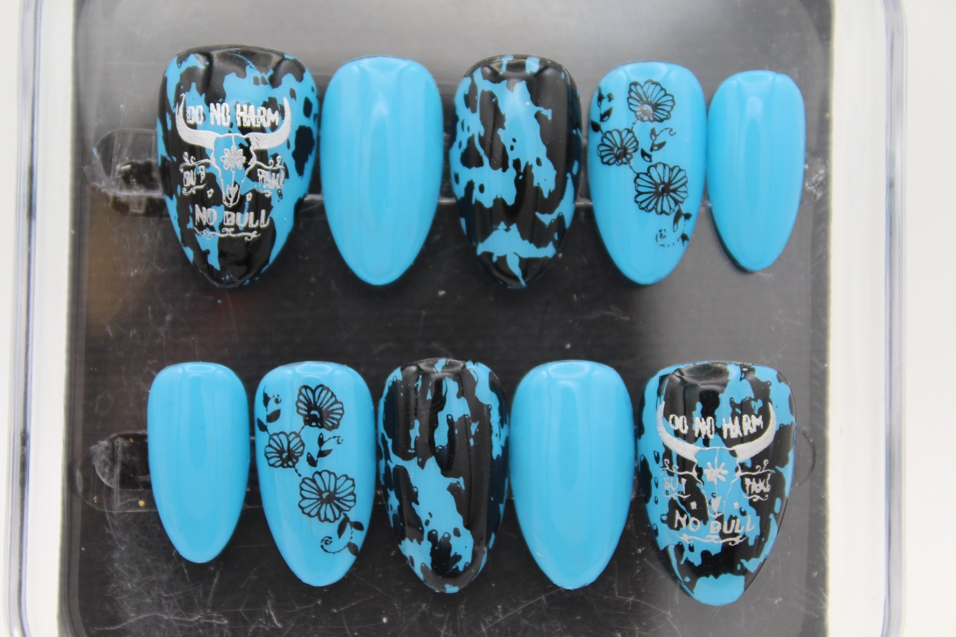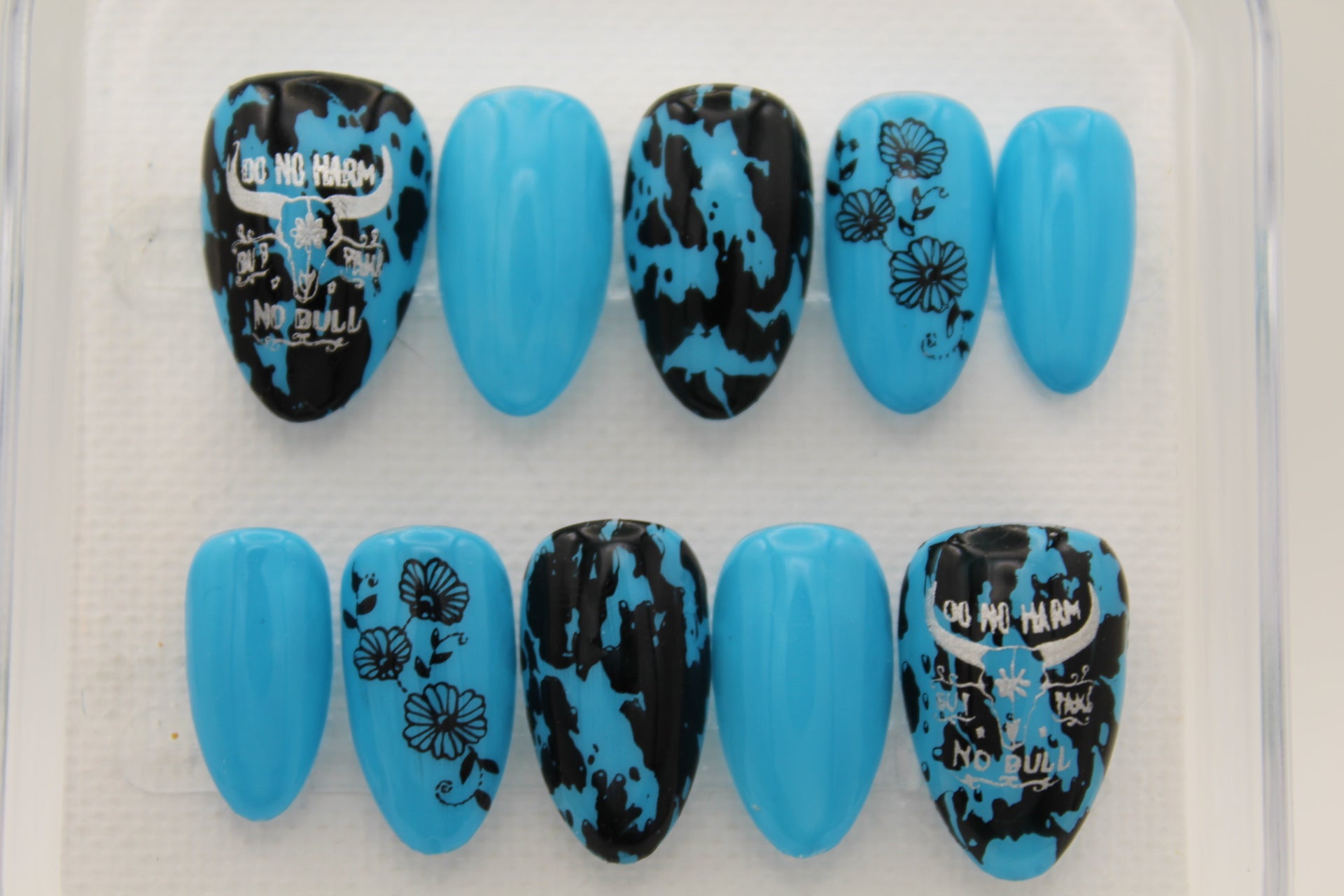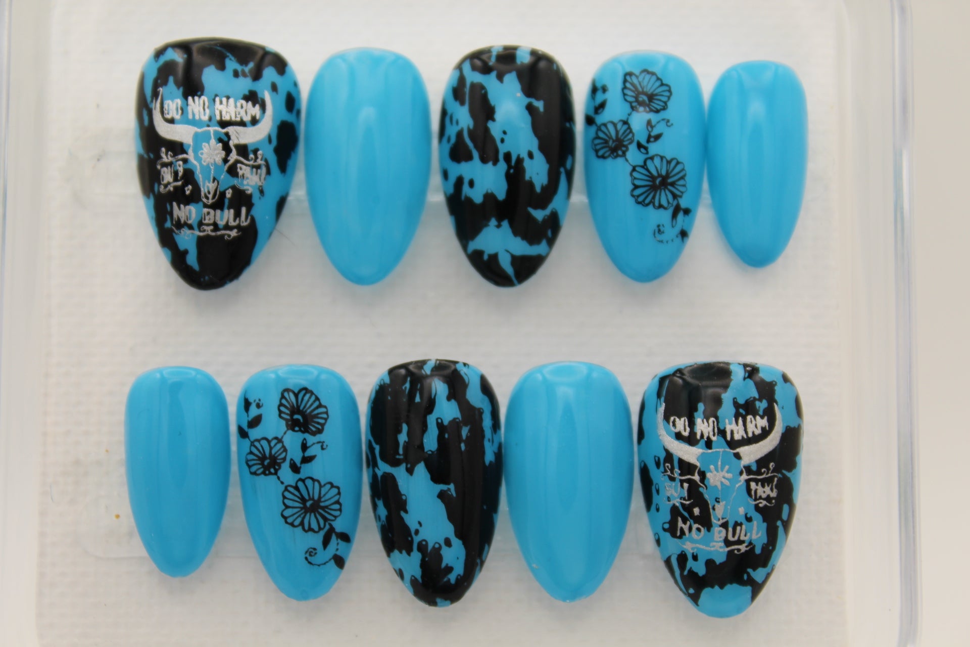 Get ready to ramp up your style with Do No Harm! This tough but sweet set features a unique cowhide print and a light blue background. With the playful phrase "Do No Harm, but take no Bull", you'll make a statement wherever you go. Don't let anyone get in your way!