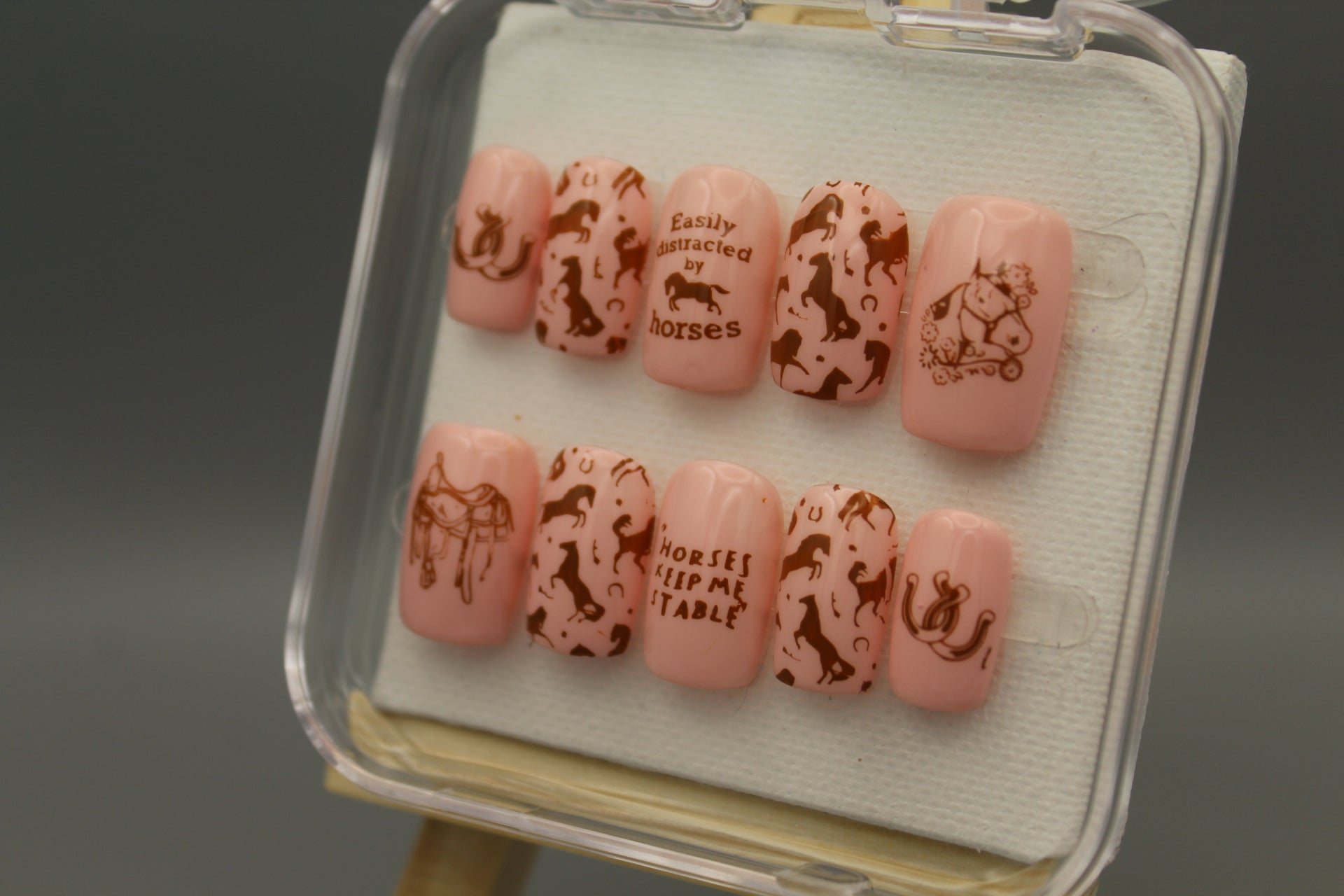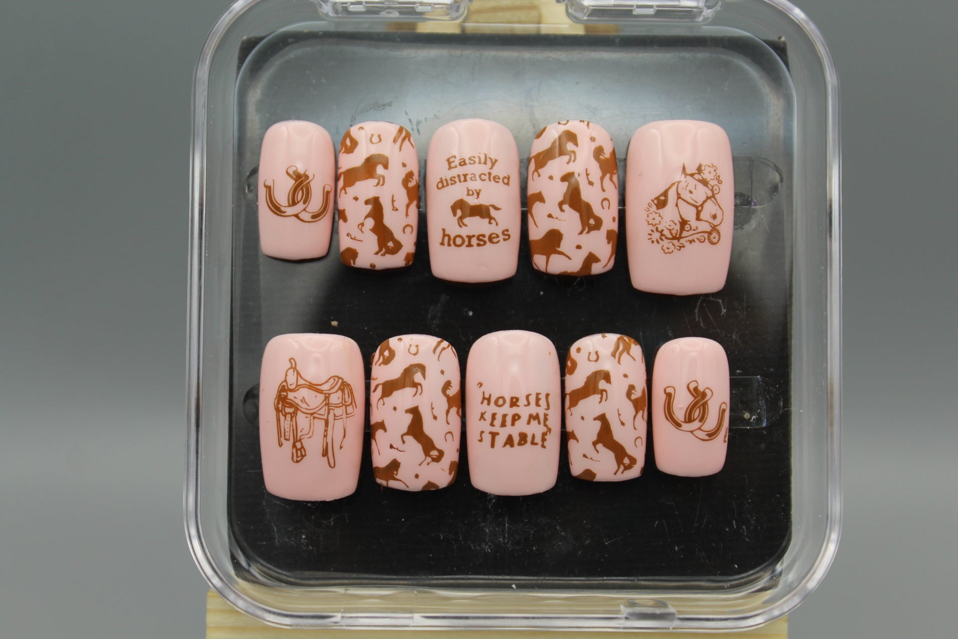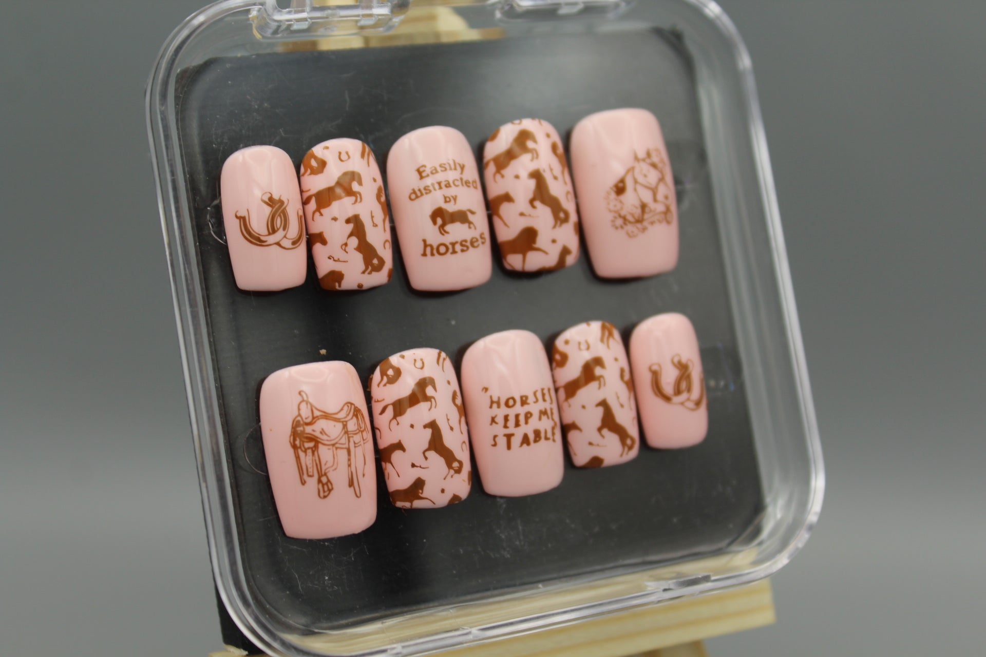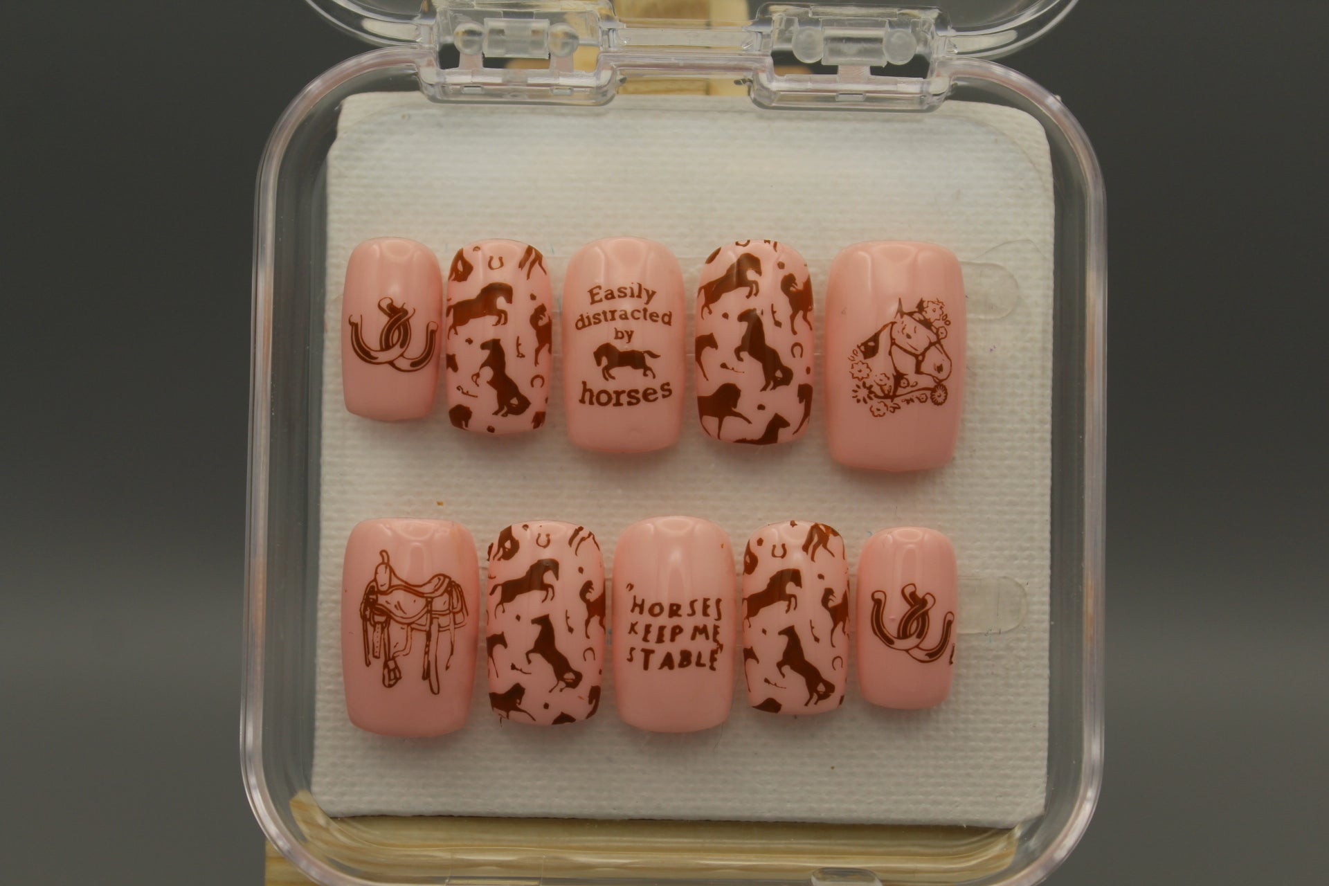 Gallop into style with our Pony Club set! These playful pink and brown designs showcase intricate horse motifs perfect for equestrians of all ages. Whether you prefer English elegance or Western flair, these saddle-inspired patterns will have you horsing around in fashion. Giddy up and show off your love for all things equine!