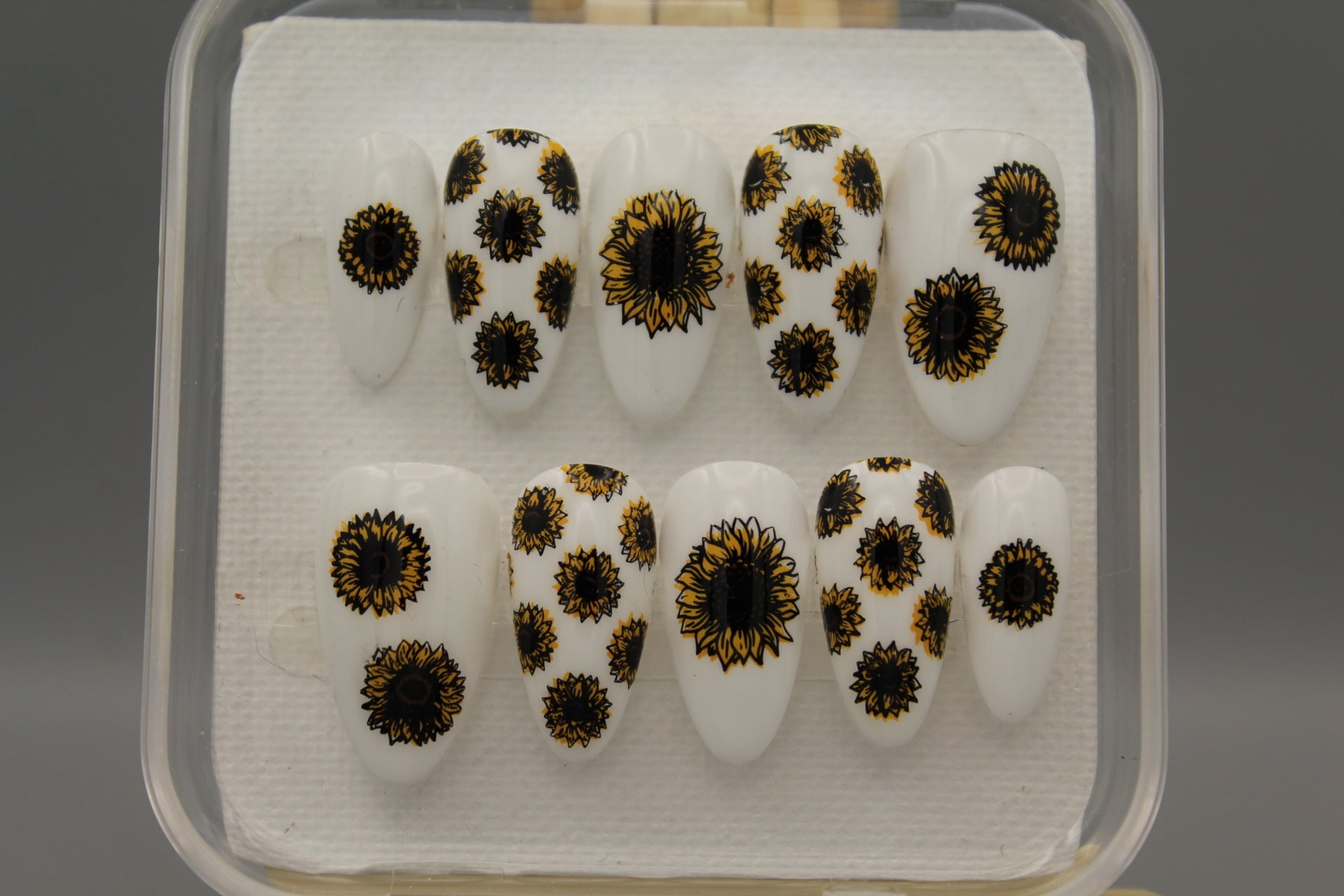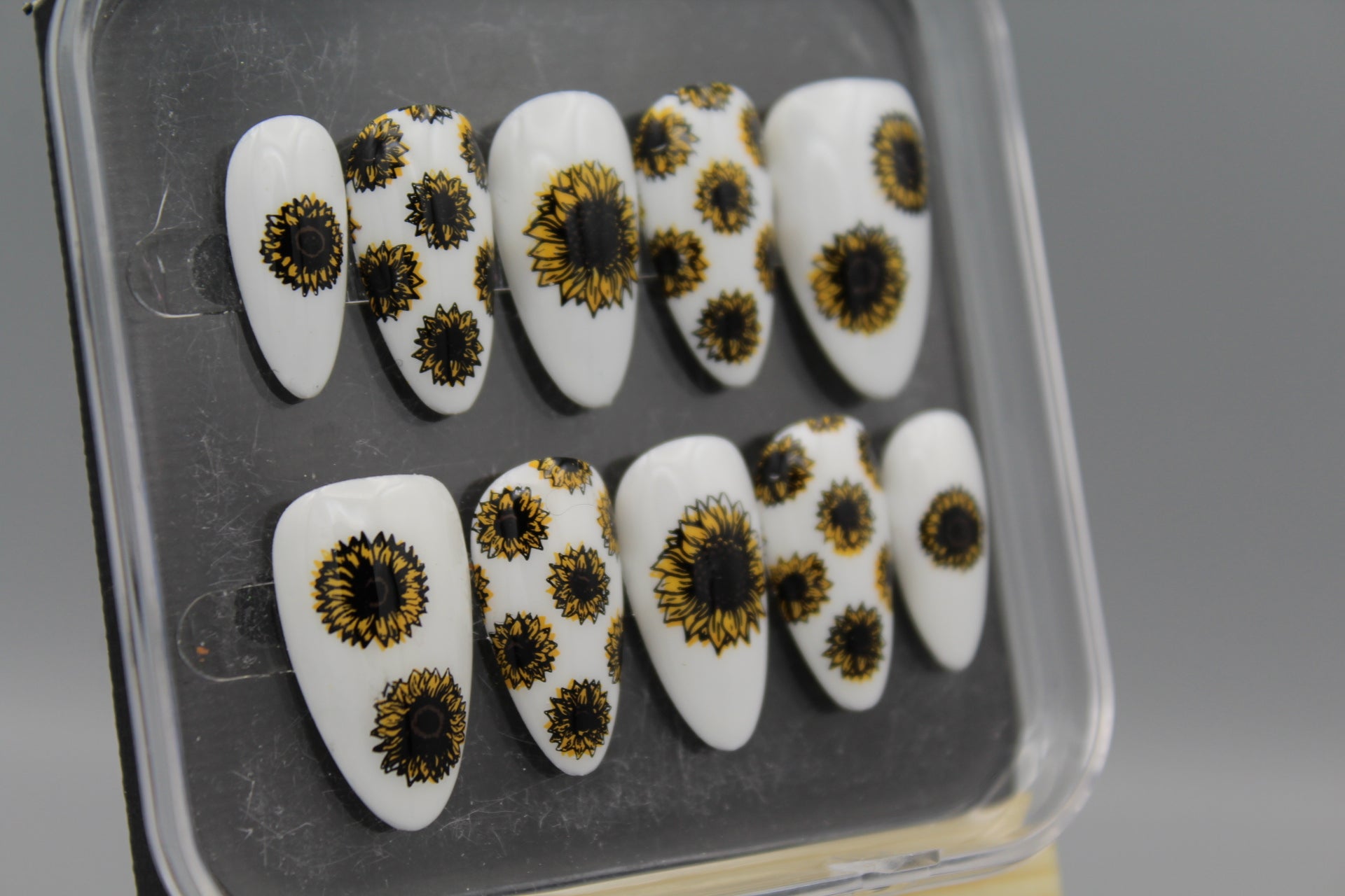 Brighten your look with the "Sunflowers & Sunshine" nail set! This playful fall accessory features vibrant, meticulously detailed sunflower designs on a clean white background, bringing the warmth and cheer of autumn to your fingertips. Perfect for adding a splash of sunshine to any outfit, these nails will keep your style blooming all season long.